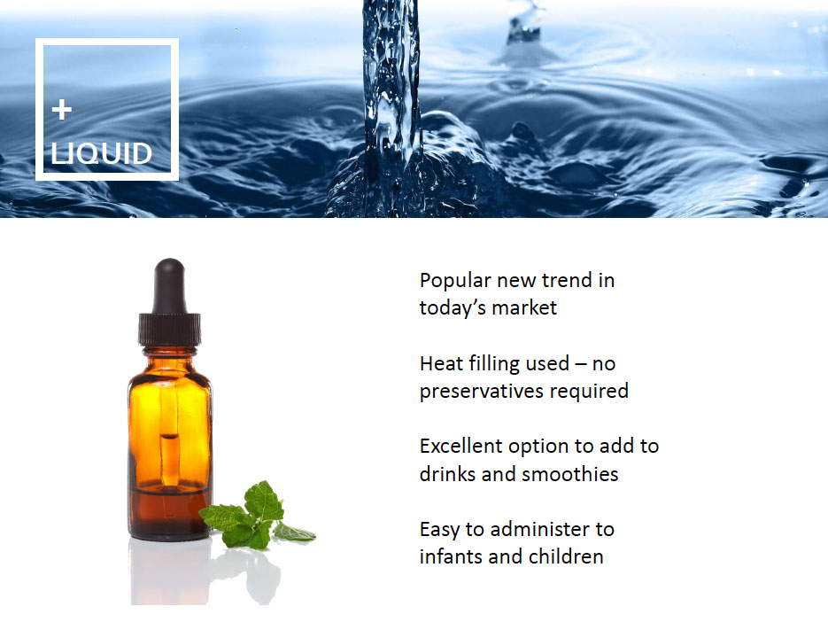 Popular new trend Heat filling used – no preservatives required Excellent option to add to drinks and smoothies Easy to administer to infants and children